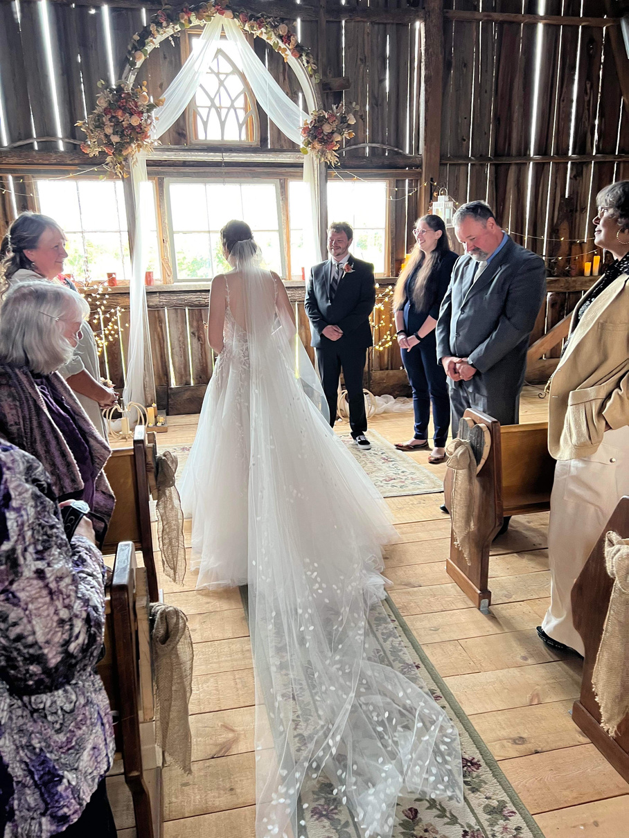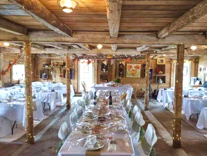 Barn rental daily rate of $1,250+HST runs from 12 noon to midnight and includes the wedding arch, lighting, carpets and pews in the chapel; chairs and tables in the dining hall; the bar; catering space in the lounge area and electricity and potable water for the caterer.